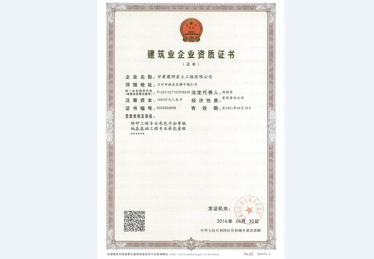 甘肃建研岩土工程有限公司《建筑业企业资质证书》