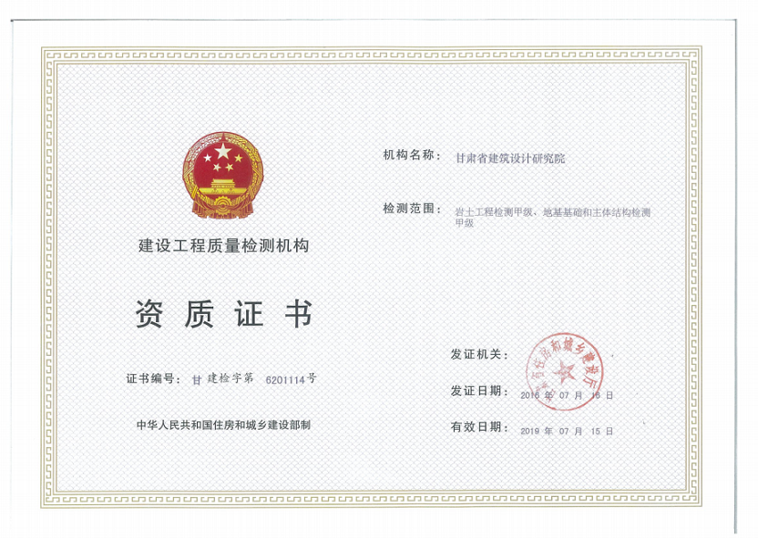 甘肃省建筑设计研究院《建设工程质量检测机构资质证书》